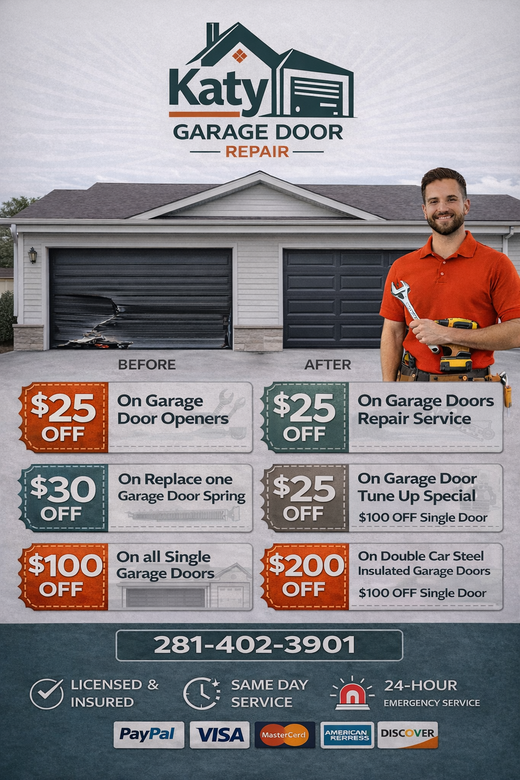 Katy Garage Door Repair is your hometown team, providing reliable, same day service and a